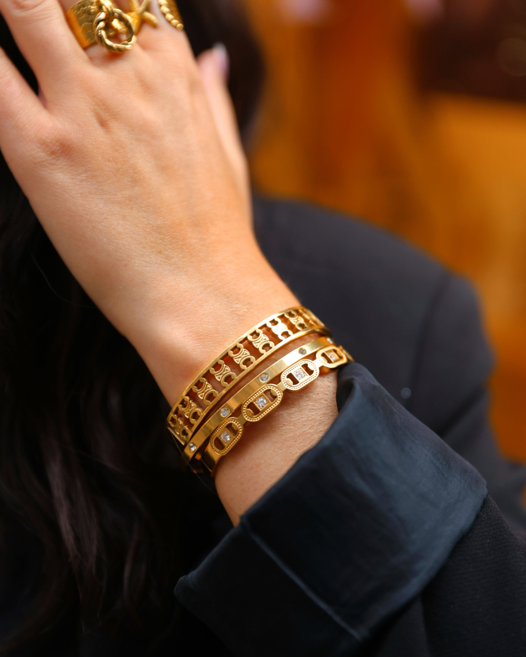 Chez Maison Riviera, tous nos bijoux sont fabriqués en acier inoxydable de haute qualité. Ils résistent à l’eau, à la transpiration et aux produits du quotidien, tout en conservant leur brillance et leur éclat comme au premier jour, sans rouille ni ternissement. Pensées pour toutes les femmes, nos créations sont également hypoallergéniques afin d’être portées en toute sérénité, même sur les peaux les plus sensibles. Enfin, la majorité de nos bagues sont ajustables pour s’adapter facilement à chaque morphologie : que tes doigts soient fins ou plus larges, tu peux varier tes compositions sans contrainte et laisser libre cours à tes envies.