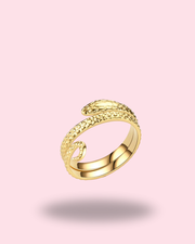La bague Snakea séduit par son design enroulé rappelant la silhouette élégante et mystérieuse d’un serpent. Ses détails texturés et son éclat doré en font un bijou audacieux, symbole de force et de féminité.