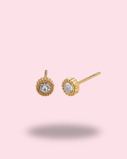 Leur cristal rond facetté, entouré d’un délicat contour perlé doré, capte la lumière avec élégance.