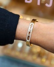 Le bracelet Élena est l’accessoire parfait pour illuminer un look du quotidien ou compléter une tenue habillée. Sa finesse lui permet de se mixer facilement avec vos autres bijoux Maison Riviera. Un must-have intemporel qui allie chic et modernité.