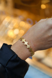 Le jonc Fortuna allie élégance et symbolisme avec ses motifs de trèfles délicatement martelés. Symbole de chance et de protection, il illumine le poignet grâce à ses reflets dorés et à son design raffiné. Intemporel et chic, il se porte au quotidien comme lors des grandes occasions.