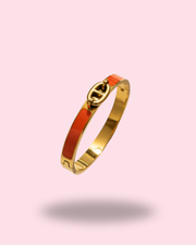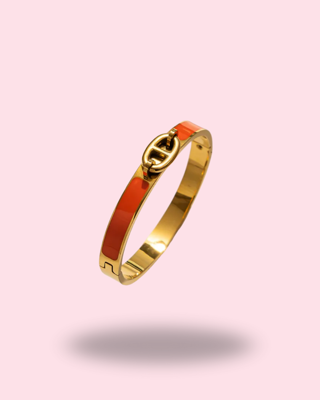 Le jonc Hélios Orange séduit par son design audacieux et solaire. Son émail orange vif, associé à son fermoir central en maillons dorés, lui confère une allure moderne et lumineuse. Symbole d’énergie et de vitalité, il habille le poignet avec élégance et caractère.