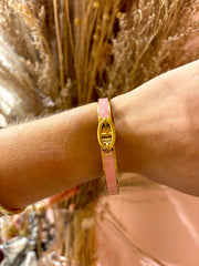 Le Jonc Hélios rose est un indispensable pour apporter couleur et caractère à vos looks. Porté seul, il signe une allure élégante ; en accumulation, il crée un jeu de contrastes moderne et tendance.