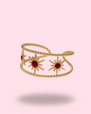 Le jonc Soléa Rouge incarne toute l’intensité et la chaleur du soleil. Orné de pierres naturelles rouges éclatantes et de motifs solaires finement sculptés, il habille le poignet d’une aura lumineuse et pleine de caractère. Son design bohème-chic en fait une pièce forte, capable de sublimer aussi bien une tenue casual qu’un look plus habillé. Porté seul, il attire les regards ; en accumulation, il révèle toute sa puissance stylistique.
