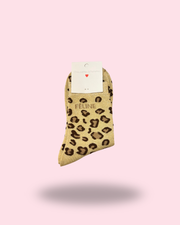 Les chaussettes pailletées léopard – Féline apportent une touche sauvage, glamour et résolument tendance à votre look. Leur maille scintillante dorée s’associe à un motif léopard affirmé, tandis que l’inscription FÉLINE ajoute une note sensuelle et pleine de caractère.