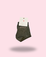 Les chaussettes pailletées gris–noir – Pétasse allient éclat, audace et une bonne dose d’humour. Leur maille scintillante gris foncé capte élégamment la lumière, tandis que l’inscription brillante PÉTASSE ajoute une touche piquante et décalée, parfaite pour affirmer sa personnalité sans se prendre au sérieux.