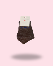 Les chaussettes pailletées marron – Garce allient éclat, audace et humour assumé. Leur maille marron scintillante reflète joliment la lumière, tandis que l’inscription brillante GARCE en bleu ajoute une touche piquante, impertinente et pleine de caractère.