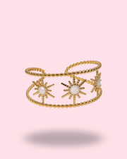 Rayonnez avec le jonc Soléa, une création inspirée par la chaleur et l’énergie du soleil. Ce bijou doré, orné de pierres naturelles aux couleurs éclatantes et de motifs solaires finement sculptés, incarne l’esprit bohème-chic. Élégant et lumineux, il se porte aussi bien seul pour sublimer une tenue minimaliste qu’en accumulation pour un style affirmé et moderne.