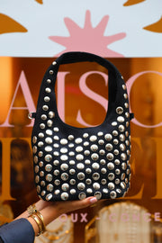 Le sac Naya noir incarne l’élégance intemporelle revisitée dans un esprit rock-chic. Confectionné en suédine vegan douce et texturée, il allie mode responsable et style affirmé. Sa couleur noire profonde est sublimée par des clous argentés qui apportent du caractère et une touche audacieuse. Avec sa silhouette épurée et moderne, il devient un allié de choix pour rehausser une tenue décontractée ou compléter un look de soirée.