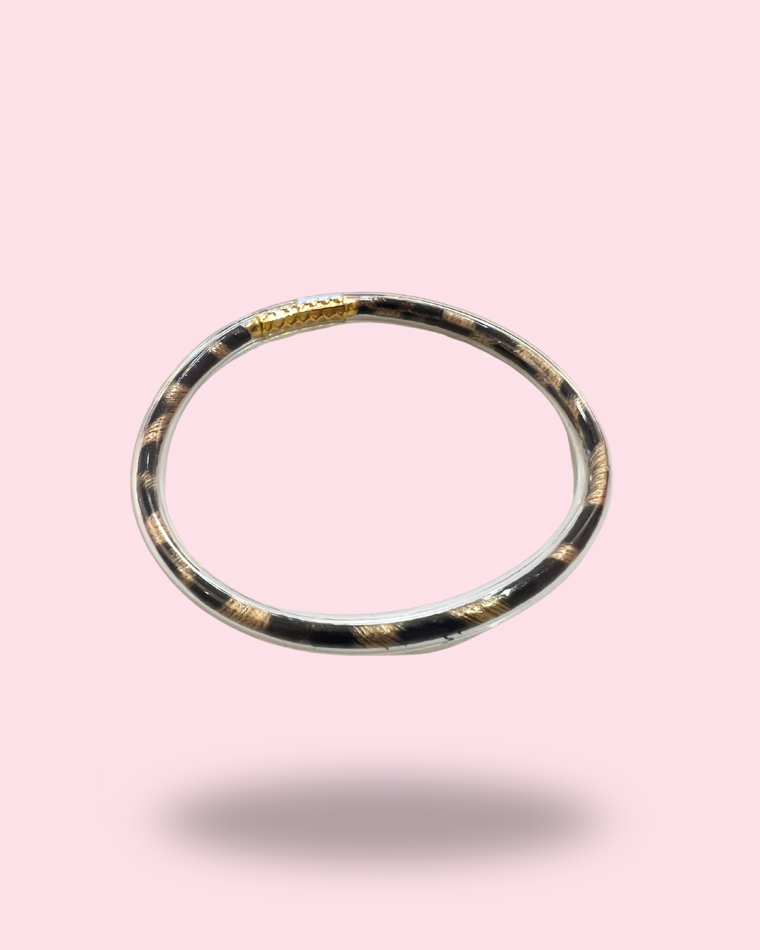 Le jonc style bouddhiste Léopard Doré revisite l’iconique jonc traditionnel bouddhiste dans une version tendance et moderne. Son design souple et brillant, associé à un élégant motif léopard, apporte un caractère audacieux et ultra-stylé au poignet. Les reflets dorés intégrés dans le motif illuminent le bijou, créant un accessoire aussi chic que facile à porter.