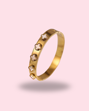 Le Jonc VALYA séduit par son design raffiné inspiré des grandes maisons de joaillerie. Ses motifs trèfles noirs incrustés apportent une touche de mystère et d’élégance, tandis que sa finition dorée illumine le poignet avec sophistication.