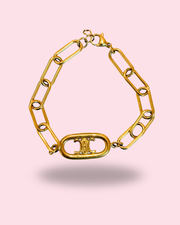 Le bracelet Lysia Or se distingue par son maillon central sculptural, inspiré des codes du luxe et du design équestre. Son style moderne et raffiné en fait un indispensable du quotidien, capable d’apporter une touche de caractère à votre poignet, seul ou accompagné d’autres bracelets.
