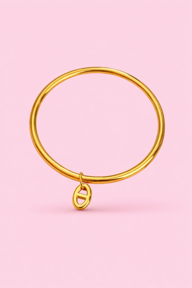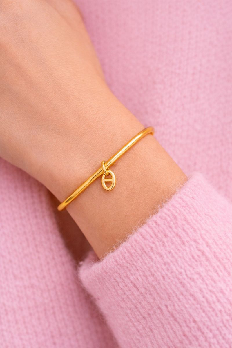 Le jonc Maela Or incarne la délicatesse et l’élégance discrète. Son design épuré, sublimé par un pendentif maillon raffiné, en fait un accessoire intemporel à porter en toute occasion.