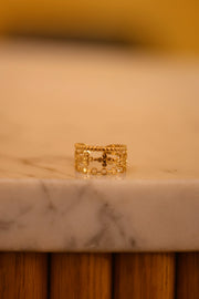 La bague Celestia séduit par son design ajouré en triple rang, combinant finesse et modernité. Ses détails délicats – perles dorées, motifs floraux et maillons élégants – s’harmonisent pour créer un bijou sophistiqué et lumineux. Chic et intemporelle, elle sublime la main avec élégance, que ce soit au quotidien ou pour des occasions spéciales.