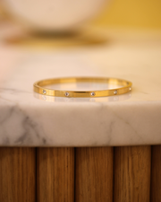 Le bracelet doré Livia séduit par sa finesse et son éclat délicat. Conçu en acier inoxydable 316L waterproof et hypoallergénique, il est orné de pierres en zirconium qui apportent une touche lumineuse et raffinée au poignet.