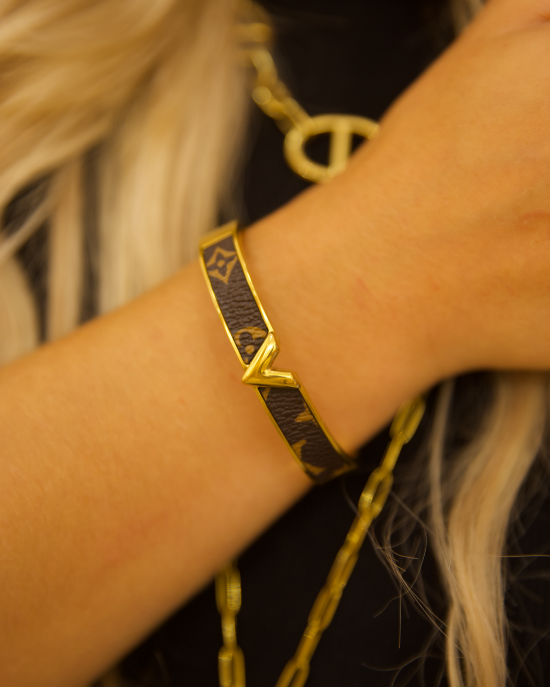 Affirmez votre style avec le jonc Louise, une pièce qui séduit par son design raffiné et son détail en V doré emblématique. L’association subtile entre la finition dorée et la texture marron lui confère un caractère chic et moderne. Élégant et sophistiqué, il s’accorde aussi bien à vos looks du quotidien qu’à vos tenues de soirée, apportant une touche affirmée et intemporelle.