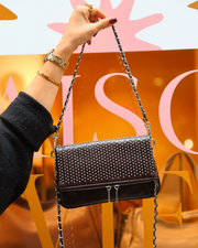 La pochette Rebel est parfaite pour apporter une touche rock et sophistiquée à vos looks, que ce soit avec un jean casual ou une robe de soirée. Compacte mais élégante, elle vous accompagne du jour à la nuit avec un style affirmé.