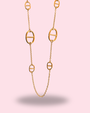 Conçu en acier inoxydable doré, il séduit par sa brillance durable et sa résistance au quotidien. Waterproof et hypoallergénique, il se porte en toute confiance, même sur les peaux sensibles, et conserve tout son éclat au fil du temps. Sa longueur tendance met en valeur le décolleté avec élégance et permet de jouer sur les styles : porté seul pour une allure sobre et raffinée, ou associé à un ras-de-cou pour un layering moderne et affirmé.